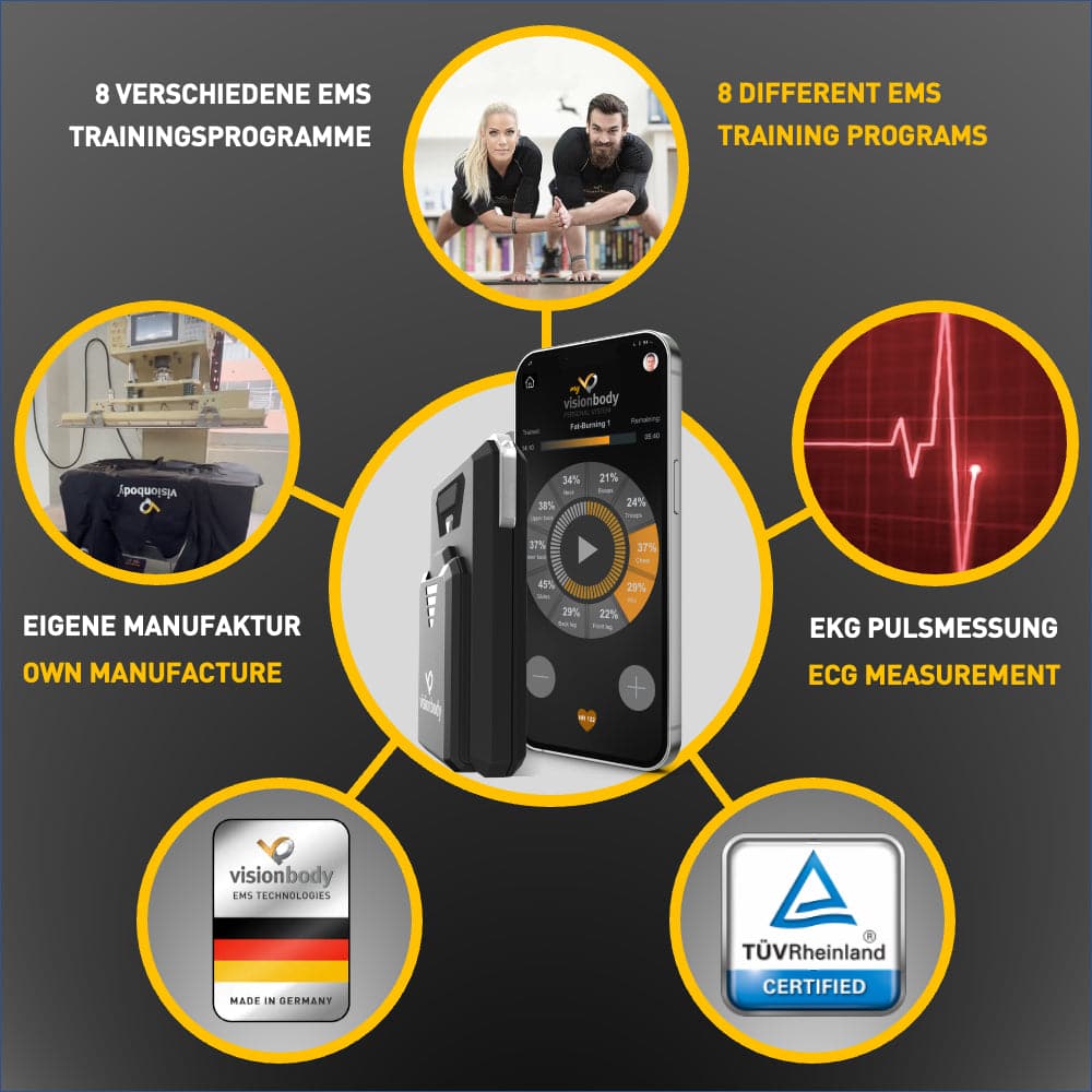 The Visionbody EMS Powersuit offers users a variety of potential benefits. When used correctly in combination with traditional training methods, users have reported stronger muscles, less back pain, a more toned body, a reduced appearance of cellulite and an improved sense of overall well-being.How often should I use the Visionbody EMS suit?