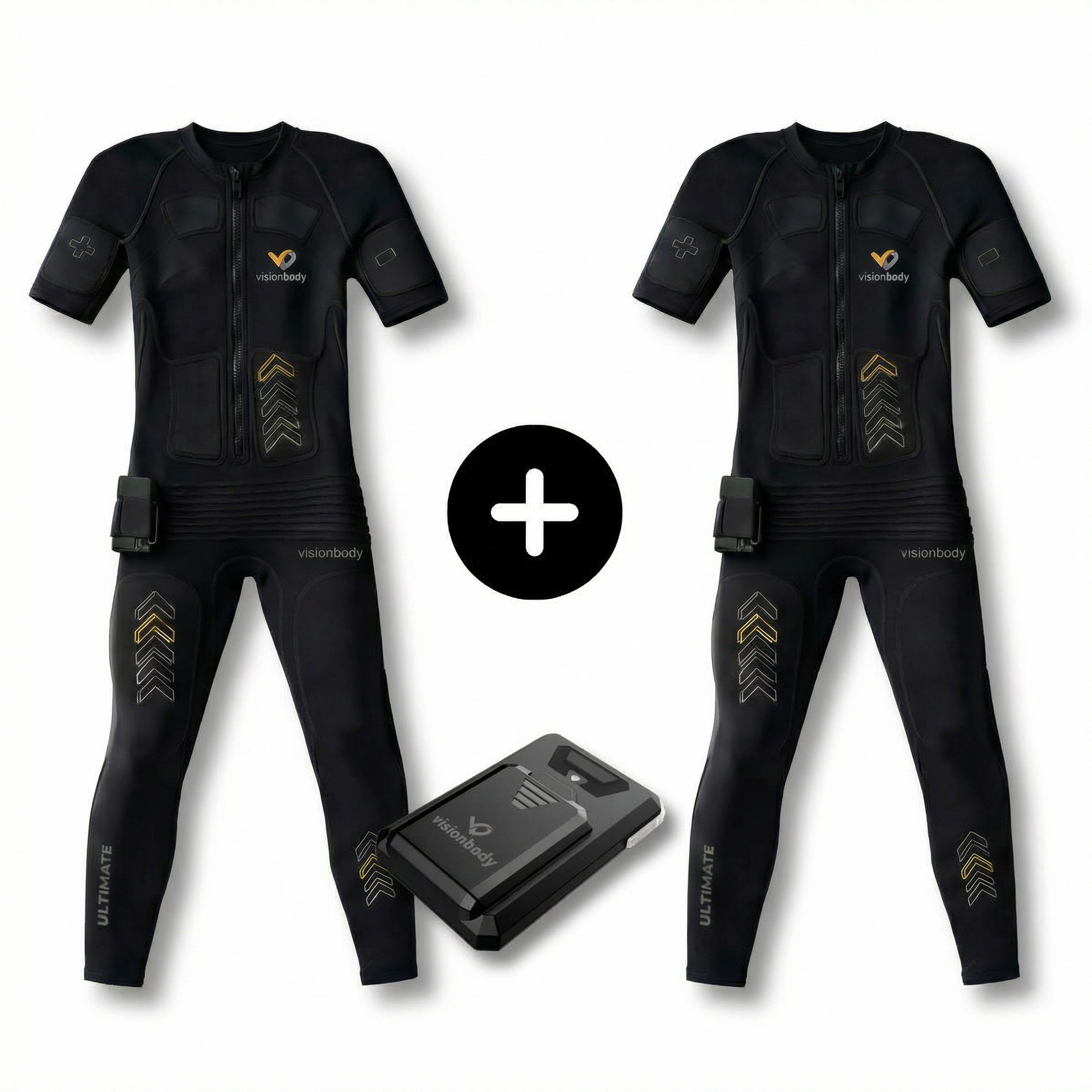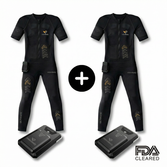 A shared Fast-Track Muscle System with two PowerSuits and one PowerBox, ideal for flexible training sessions taken one after another, anytime, anywhere.